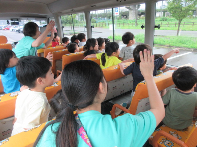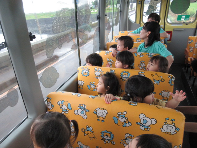 未満児クラスの遠足ではあいにくのお天気だったので、0歳児は園内で遠足ごっこ、1・2歳児はバスに乗ってドライブを楽しみました♩