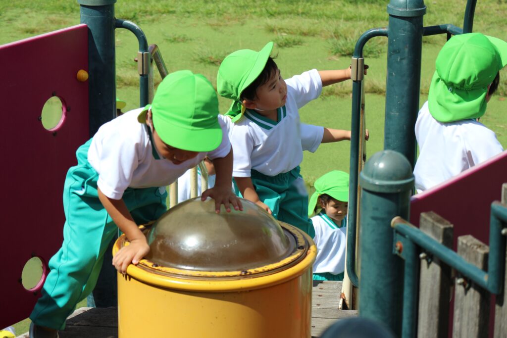 3歳以上児クラスは千秋が原ふるさとの森に行き、遊具であそんだり散策したりして楽しみました♩
