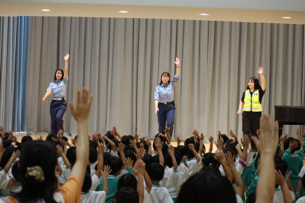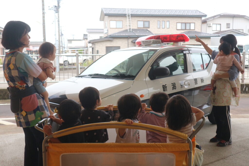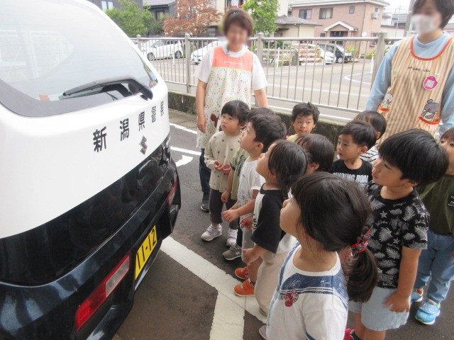 10月8日(水)に長岡警察署と新潟県警察「ゆきつばき号」の方にお越しいただき、交通安全教室を行いました。