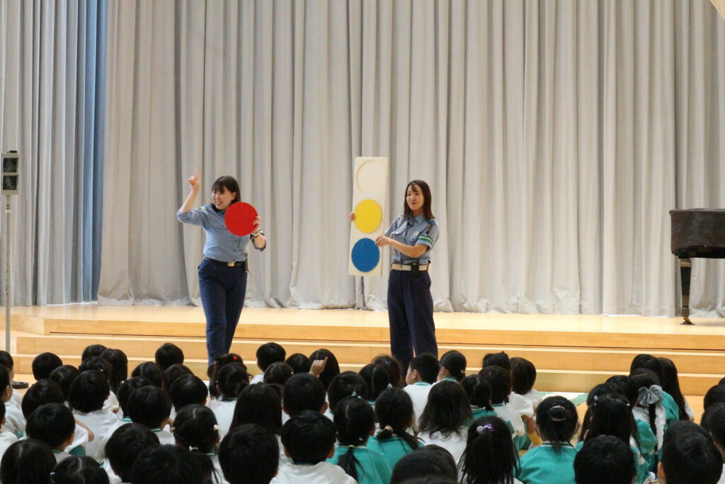 一人にひとつしかない大切な ‶いのち″ を守るためにはどうしたら良いのか、交通安全の約束をクイズや腹話術で楽しく学びました。