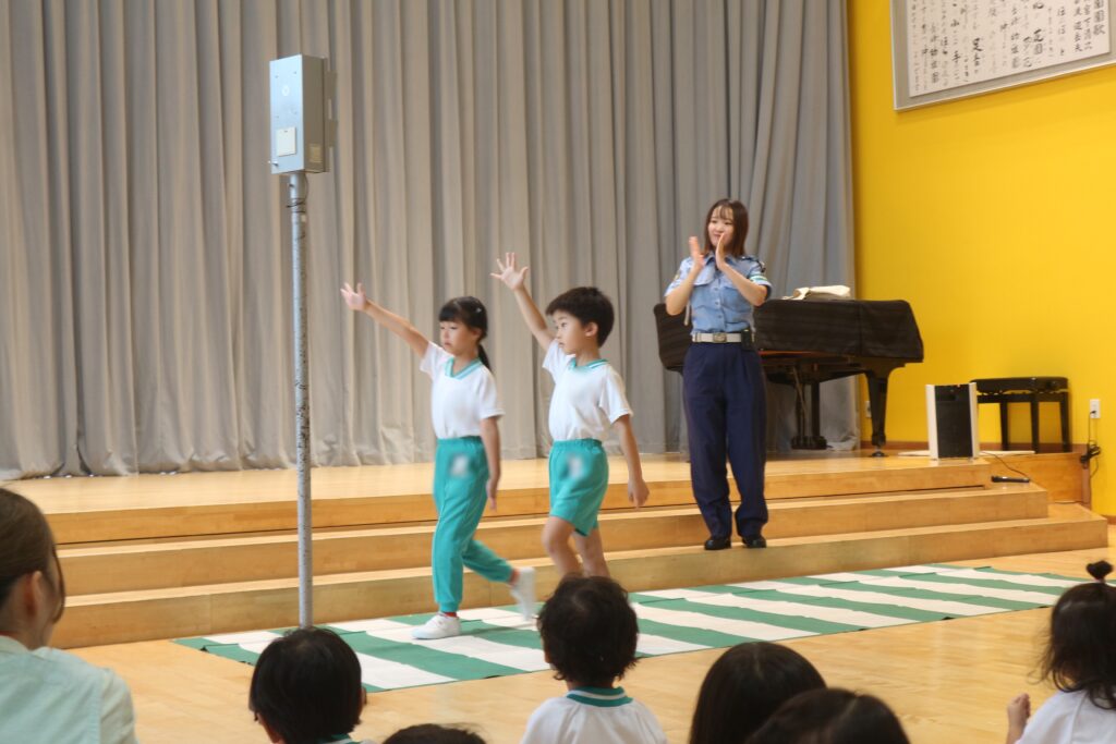 をみんなで確認し、年長組の子どもたちが代表して実際にやってみました。