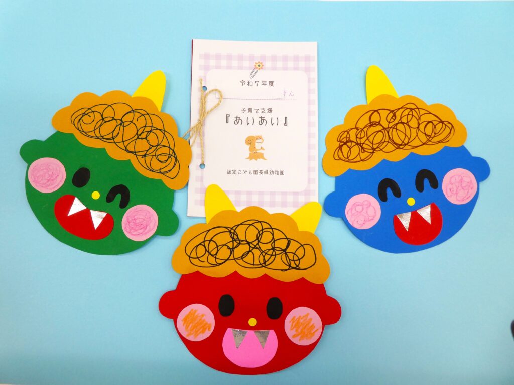 まめまきごっこで製作を予定しておりました鬼のお面作りセットと、年間を通してご参加いただいた方には、手形や写真をまとめた物ご用意しております。