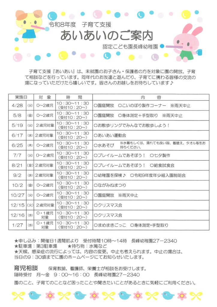 長峰幼稚園では、月に一回程度子育て支援『あいあい』を行っております。
