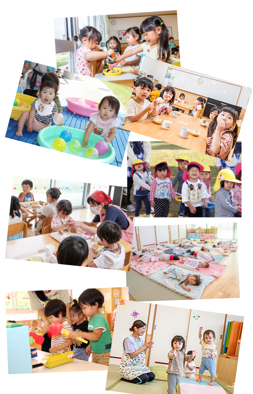 一人ひとりの個性を尊重し、自立と社会性の育ちを大切にするとともに、乳幼児期それぞれの年齢にふさわしい豊かなあそびの経験や生活体験を通して、主体的にたくましく生きる力の基礎づくりと、人間性豊かな子どもを育てます。